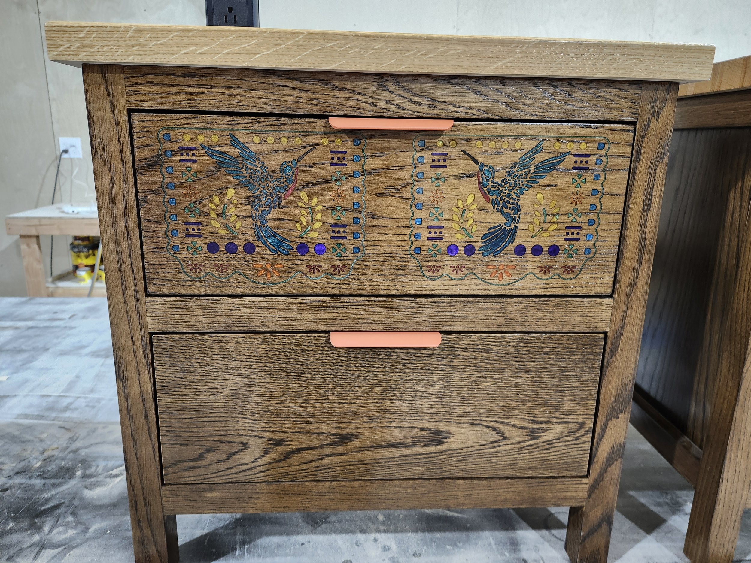 Custom designed octagonal nurse’s station with laminate surround and hardwood handrail.